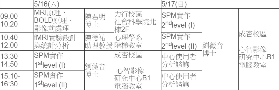 課程名稱:fMRI資料分析:從MRI理論講解到SPM實作
